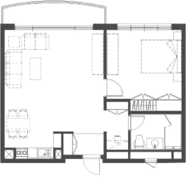 방1개, 거실, 주방, 욕실