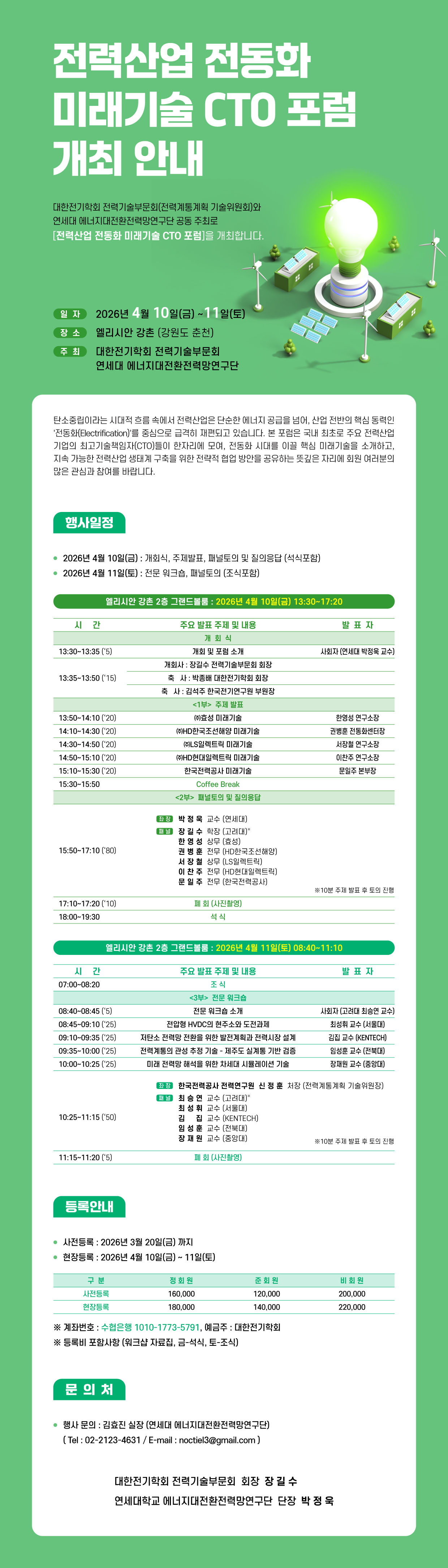 숙소 예약 안내 [전력기술부문회] 전력산업 전동화 미래기술 CTO 포럼 엘리시안 강촌 숙박 신청 안내 장 소 : 엘리시안 강촌 (강원도 춘천)[숙박신청서 다운로드] 예약 안내 : 신청서 작성 및 접수 → 접수 확인 메일 → (엘리시안 강촌) 예약확정 문자 발송 - 객실 예약 마감 : 2026년 3월 6일(금요일) 까지 - 예약 취소 : 3월 11일(수요일) 까지