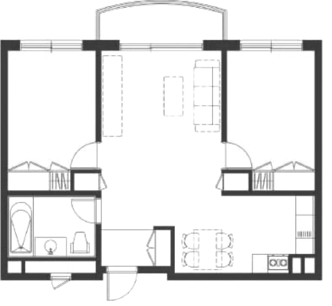 방2개, 거실, 주방, 욕실